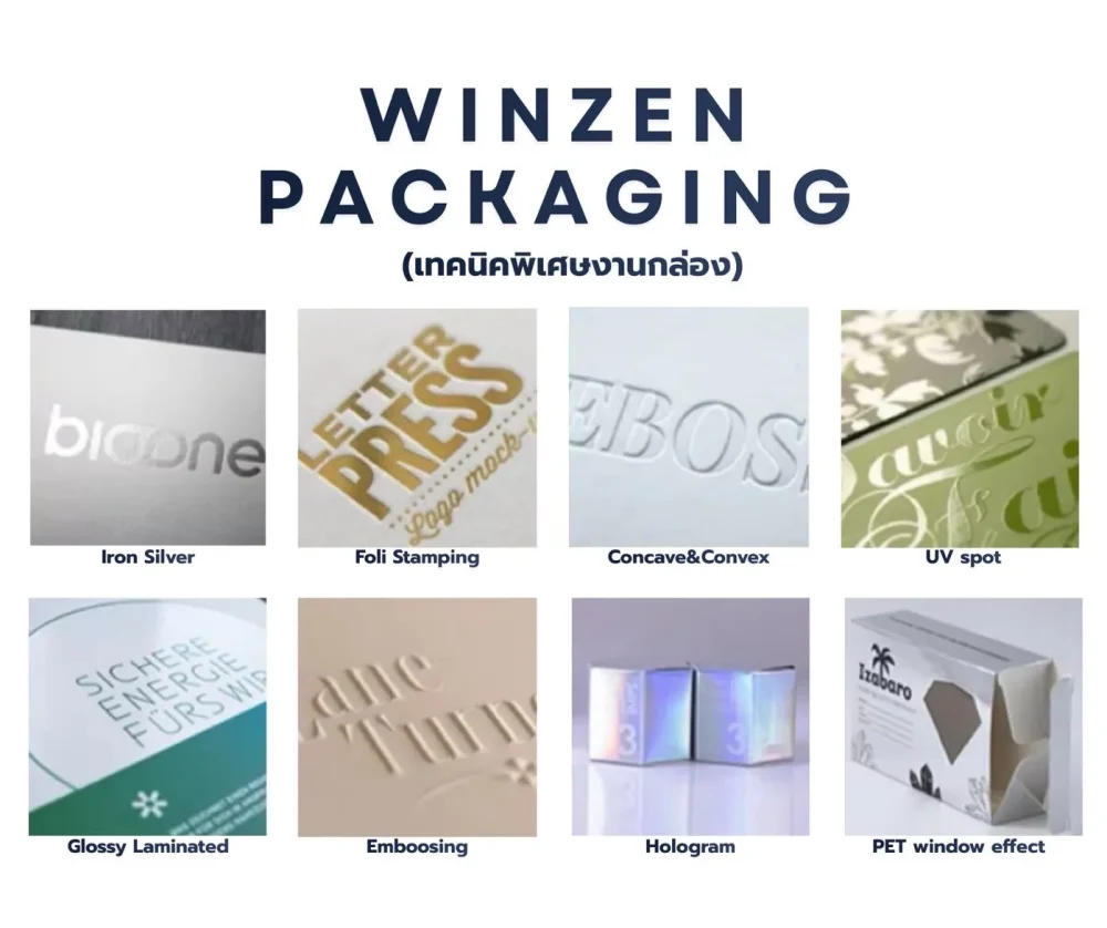 สามารถเคลือบลามิเนตด้าน/เงา ปั๊มนูนโลโก้ ฟอยล์ทอง/เงิน หรือ Spot UV